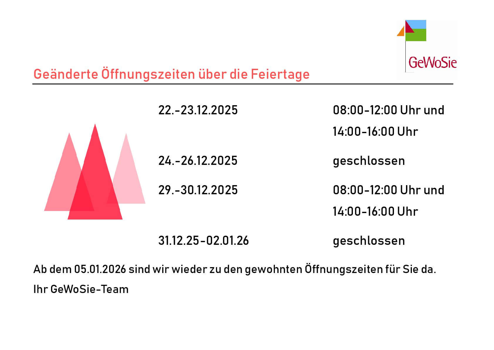 Bitte beachten Sie die geänderten Öffnungszeiten über die Feiertage.